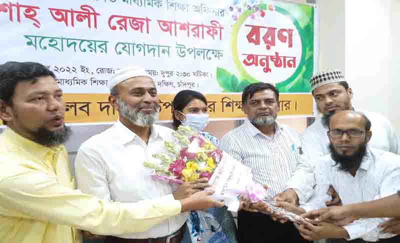 চাঁদপুরের মতলব দক্ষিন উপজেলার নবাগত উপজেলা মাধ্যমিক শিক্ষা অফিসার হিসেবে মোঃ শাহ আলী রেজা আশরাফীর যোগদান উপলক্ষে বুধবার ১৬ ই নভেম্বর বিকেলে উপজেলা মাধ্যমিক শিক্ষা অফিস হল রুমে আয়োজিত বরণ অনুষ্ঠানে নবাগত উপজেলা মাধ্যমিক শিক্ষা অফিসারকে ফুলেল শুভেচ্ছায় বরণ করেন উপজেলা মাধ্যমিক শিক্ষক পরিবার।